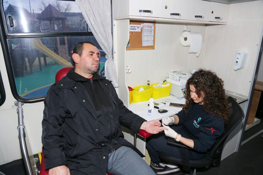 Sağlık İşleri Müdürlüğü’nün mahalleye konuşlandırdığı Sağlık Otobüsü ile vatandaşlara ücretsiz sağlık taraması hizmeti sunuldu. Hizmet kapsamında tansiyon, göz tansiyonu ve açlık kan şekeri ölçümleri gerçekleştirilerek vatandaşlar bilgilendirildi.