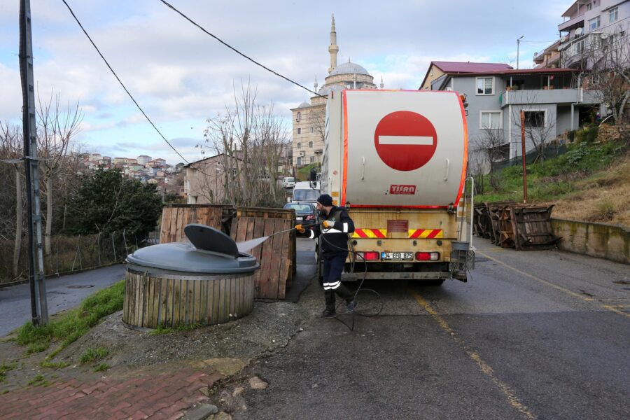 Temizlik İşleri Müdürlüğü ekipleri, süpürge araçları, el süpürgeleri ve yıkama araçlarıyla Soğuksu Mahallesi’nin ana arterleri ve ara sokaklarında kapsamlı temizlik çalışması yürüttü. Yapılan çalışmalarla birlikte çöp konteynerleri yıkanarak dezenfekte edildi, çevre sağlığını olumsuz etkileyen unsurlar ortadan kaldırıldı.