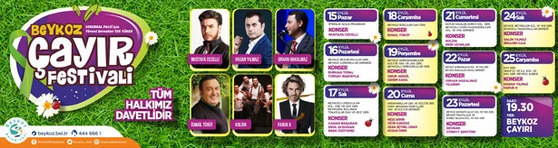 19 yöre derneğinin katılacağı Beykoz Çayır Festivali, 15 Eylül Pazar-25 Eylül Çarşamba tarihleri arasında, Burhan Topal'dan İsmail Türüt'e, Neşe Demir'den Ekin Uzunlar'a, Orhan Hakalmaz'dan Faruk K'ya ve sevilen yöresel sanatçıları ilçe sakinleriyle buluşturacak.